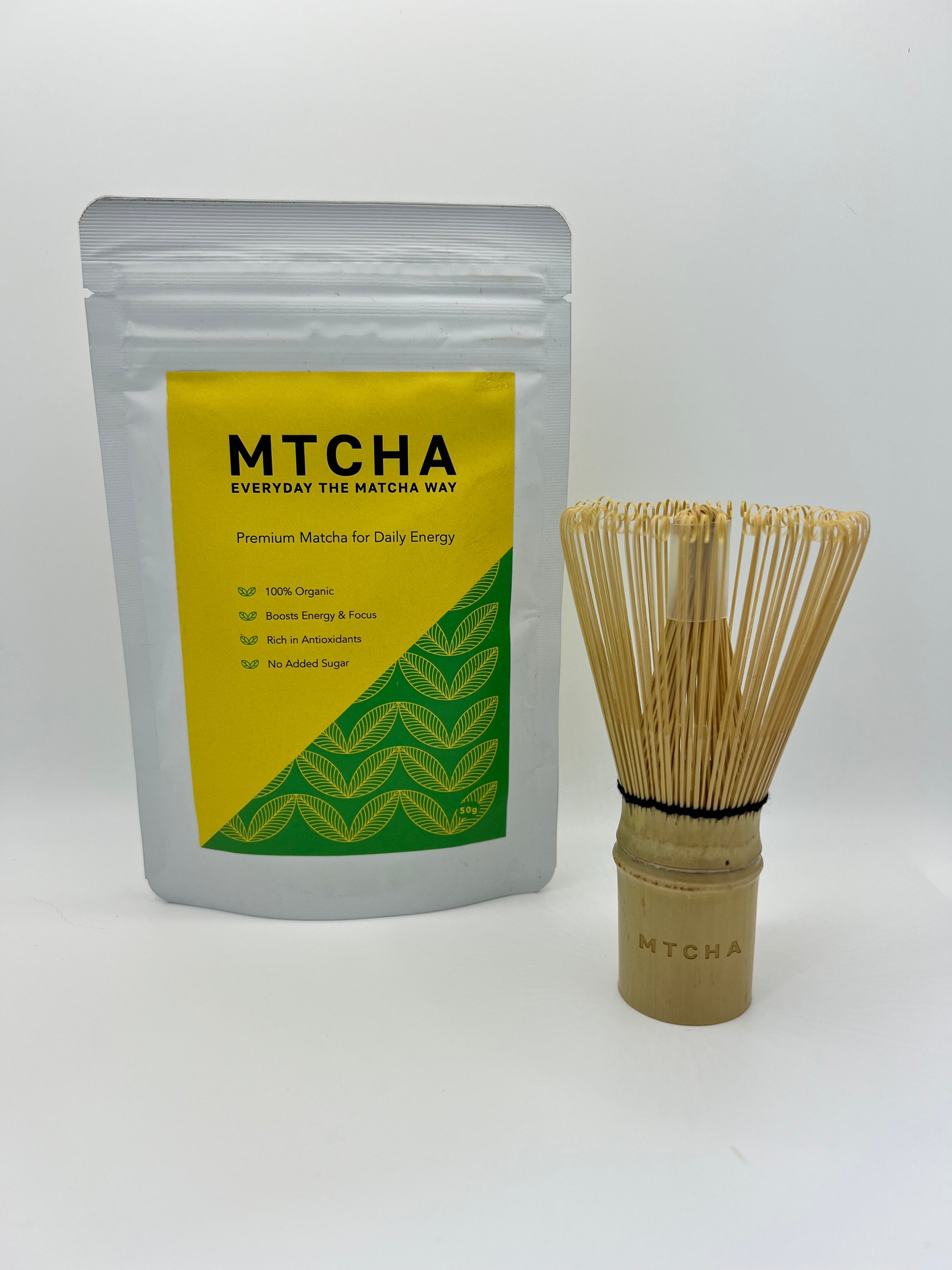 This all-in-one starter pack comes with a 50g sachet of our ceremonial-grade matcha and our MTCHA engraved bamboo whisk to froth your way into the daily ritual.